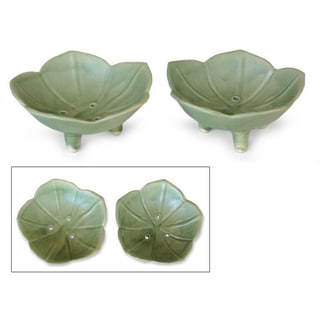 SaleSet of 2 Ceramic 'Lotus Pond' Soap Dishes (Indonesia)