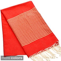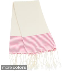 SaleAuthentic Fouta Natural Cotton Towel with Silver Lurex Stripes (Tunisia)
