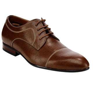 SaleOxford & Finch Men's Topstitched Almond Toe Leather Lace-up Oxfords