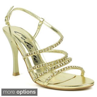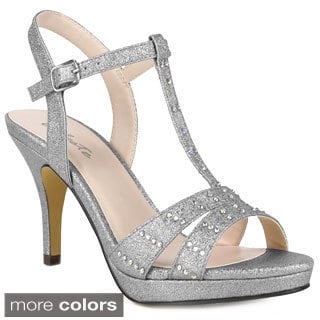 Celeste Women's 'Charlize-02' Rhinestone Metallic T-strap Heels