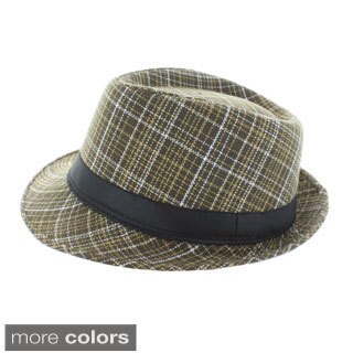SaleFaddism Taupe/ White Plaid Fedora Hat