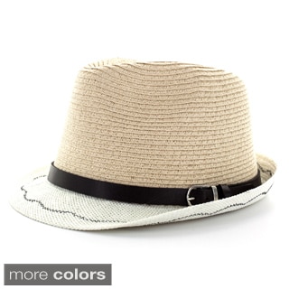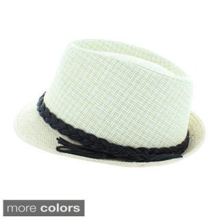 SaleFaddism Men's Cream/ White Woven Fedora Hat