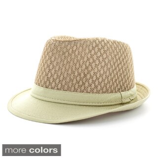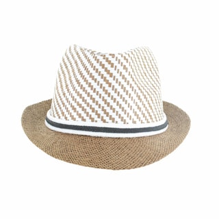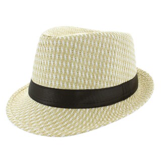 SaleFaddism Men's Cream/ White Woven Fedora Hat