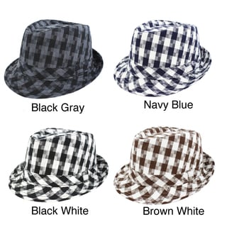 SaleFaddism Taupe/ White Plaid Fedora Hat