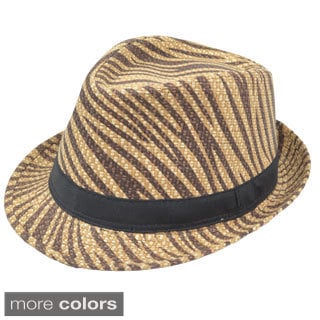 This retro-inspired fedora by Faddism features a sturdy polyester and cotton construction with an animal stripe design. This trendy, unisex hat is topped with a satiny black ribbon band for added class and style.- Color options: Yellow, brown