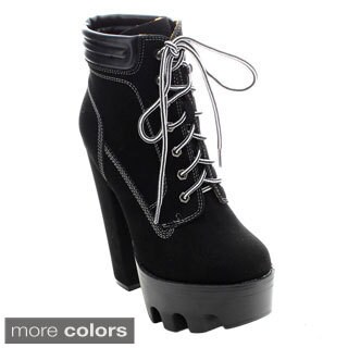 Look ready for this coming spring in these lug sole platform booties, featuring a peep-toe and lace up style.| Caractéristiques | |