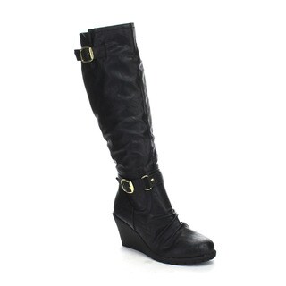 SaleTop Moda PURE-66 Women's Buckle Knee High Platform Wedge Slouched Boots