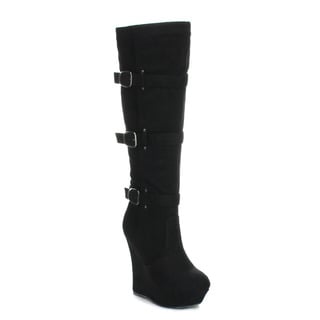 SaleADRIANA KAREN-50 Women's Buckle Accents Wedges Knee High Boots