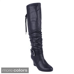 SaleJournee Collection Women's 'Meme' Tall Faux Leather Buckle Boots