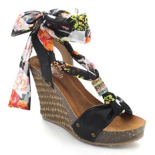 SaleRefresh SHANIA-07 Women's Floral Pattern Printed Platform Strappy Wedges