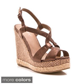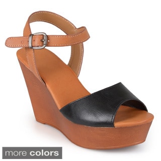 SaleJournee Collection Women's 'Olive' Open Toe Platform Wedges