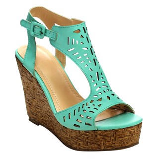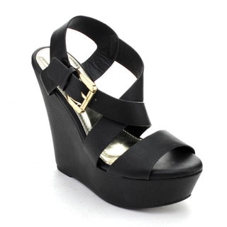 SaleFahrenheit Women's 'Fig-01' Cross-strap Wedge Sandals