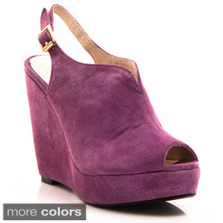 SaleNvy Women's 'Foxy' Suede Slingback Ankle Strap Wedges