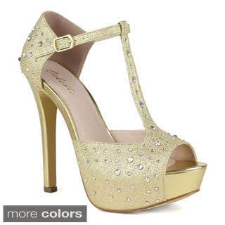 SaleCeleste Women's Lynn-06 High Heel Open Toe T-Strap Shinning Diamond Platform Sandals