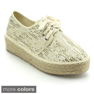SaleBetani Pricilla-1 Women's Comfort Platform Sequin Lace Up Eapadrille Sneakers
