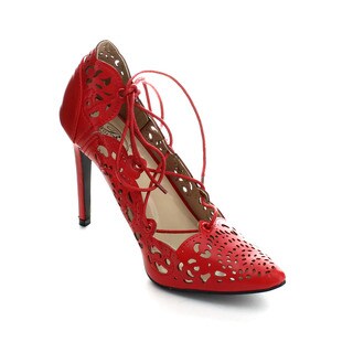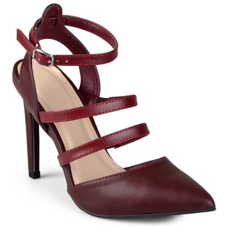 Covet show-stopping shoes by Journee Collection. These fierce pumps feature colored faux leather uppers with ankle straps and buckle accents. A striking cut-out patterned caged design, pointed toes and slender stiletto heels complete the design.| Caractéristiques | |