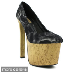 Step out and make a statement in these patent platform pumps by Journee Collection! These trendy pumps feature lustrous patent leather uppers with a gold rim around the soles. Sky-high heels and tall platforms complete the look.| Caractéristiques | |