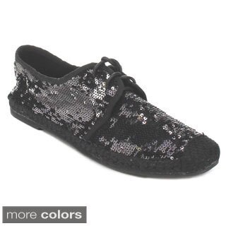 SaleNvy Women's Shoe Salsa Reverse Sequin Lace-up Oxford Flat