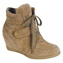 The classic sneaker gets a boost with hidden wedge heels on these trendy high-top sneakers. These sporty sneakers are constructed with composite faux leather and faux suede uppers with textured rubber soles.