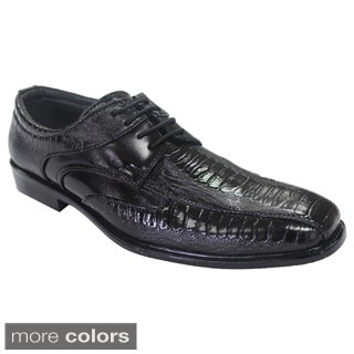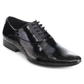 SaleUV Signature UV006 Men's Shiny 4-eyelet Lace Up Woven Dress Oxfords
