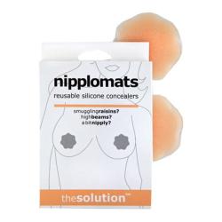 Smuggling Raisins? High Beams? A Bit Nipply? the solution is Nipplomats: reusable silicone concealers. Prevent the embarrassment of nipples that insist on perking up at inconvenient and inappropriate moments by using reusable Nipplomats pasties under evening gowns, sheer tops and even swimsuits. Try them with The Perk Up for a perky and discreet look without wearing a bra. Using Nipplomats is easy: 1) Make sure skin is dry and free of lotion. 2) Remove Nipplomats from the backing and firmly apply over each nipple. 3) When removing it, immediately re-adhere Nipplomats to their backing to prolong their life. Silicone with silicone adhesive. Pre-test for skin sensitivity and discontinue use if redness or sensitivity occurs. 1 pair in beige. Reusable up to 25 times.