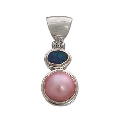 SaleSterling Silver 'Eclipse' Pearl and Opal Pendant (14 mm) (Indonesia)
