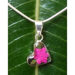 SaleSterling Silver Miniature Hot Pink Flower Tiny Heart Necklace (Mexico)