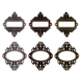 SaleStaples Ornate Metal Label Holders 3/Pkg-Antique Brass With 6 Brads