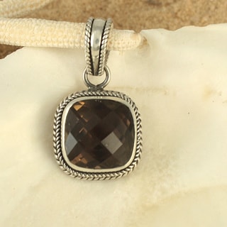 SaleSterling Silver Smoky Quartz Cable Bali Pendant (Indonesia)