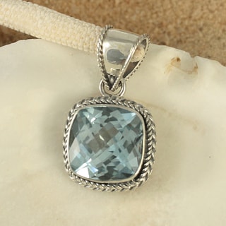 SaleSterling Silver Blue Topaz Cable Bali Pendant (Indonesia)