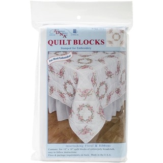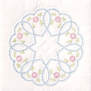 SaleStamped White Quilt Blocks 18"X18" 6/Pkg-Interlocking Floral & Ribbons
