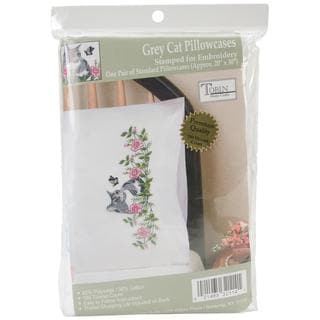 SaleStamped Pillowcase Pair 20 X30 For Embroidery - Grey Cat