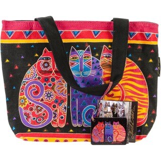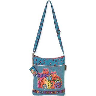 LAUREL BURCH-Crossbody Purse: Feline Friends. The bright vivid colors and whimsical creatures that are the signature design of artist Laurel Burch adorn this canvas tote that is both a practical bag and a beautiful piece of art. This 10x10 inch Crossbody Purse features one main zippered compartment; an outer side pocket with a magnetic snap closure; and an adjustable strap. Imported.Specs