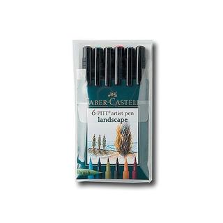 This Faber-Castell pitt artist brush pen set features 6 artist pens which combine a brush nib design with colored India ink. The ink is odorless, permanent, waterproof, and lightfast.- Quantity: 6 pens