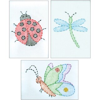 SaleWhite Stamped Beginner Embroidery Kit 6"X8" Samplers 3/Pkg-Cute As A Bug