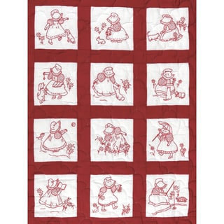 SaleStamped White Nursery Quilt Blocks 9"X9" 12/Pkg-Sunbonnet Girls