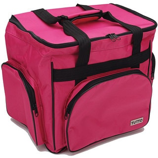 This elegant carrying case is perfect for the travelling sewingenthusiast. A front pocket easily stores sewing machine feet andnotions, and the large compartment easily fits the machine. Thepadded carry strap makes the tote easy to carry, and a Velcro strapclosure provides extra security.- Roomy exterior pocket