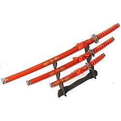 SaleYing Yang Symbol Red 3-piece Samurai Sword Set