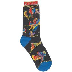 K BELL-Laurel Burch Slipper Socks. The stylish designs of Laurel Burch now come in sock form. These slipper socks are 85% acrylic/10% polyester/5% spandex and feature grippers on the bottom. Available in a variety of designs (each sold separately). Care: machine wash; machine dry; non-chlorine bleach only. Imported.Specs