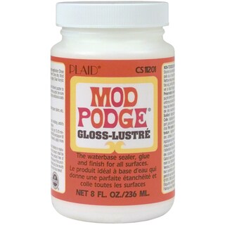 MOD PODGE-Gloss Lustre in a 4 ounce plastic bottle with a closable squeeze top. The waterbase sealer, glue and finish for all surfaces. Non toxic, non flammable. Conforms to ASTM D 4236.| Dimensions | 4oz |