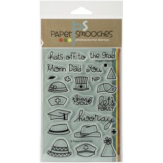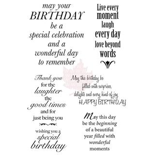 Give your projects personality with this clear stamp set from Paper Smooches. This package contains fifteen clear stamps with various phrases, which are ideal for decorating greeting cards, scrapbooks and posters. The stamps in this clear stamp set are compatible with any acrylic block. Simply glue the stamp, ink it and stamp it to create personalized goods.Specs