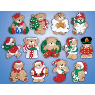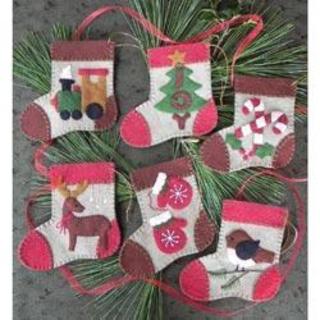 Rachel's Of Greenfield-Redwork Mittens Ornament Kit: Set Of Six. Elegant in their simplicity, these mittens use red embroidery stitching to create 6 festive designs. A reindeer, cardinal, steaming mug, Holy family, pine tree and small bird with a hat are sewn in red thread on a white background. Mittens are finished with red cuffs and a red blanket stitch along the outside edge. Lovely for trimming a tree, they are also the perfect size to hold a gift card or other small treasures. This package contains felt, iron-on transfer embroidery patterns and illustrated instructions, embroidery floss and gold string. Design Size: six 4-1/2x4 inch ornament mittens. Imported.Specs