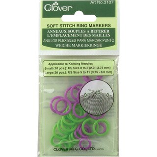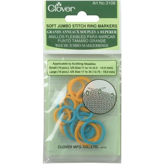 CLOVER-Stitch Markers. This package contains twelve large plastic; triangle stitch markers for knitting needles sizes US11/8mm to US15/10mm. Imported.| Dimensions | US11/8mm to US15/10mm |