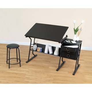 SaleStudio Designs Comet Black/White Center Drafting and Hobby Craft Table with Stool
