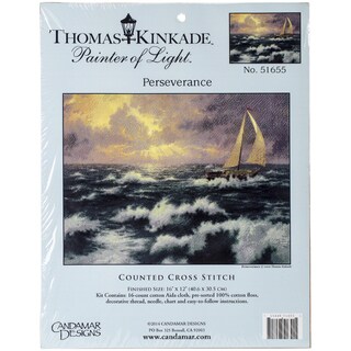 MCG TEXTILES-Counted Cross Stitch Kit. Bring the stunning artwork of Thomas Kinkade into your home with this gorgeous stitched design. The kit includes 16-count cotton Aida cloth; pre-sorted cotton floss; needle; chart; and easy-to-follow instructions. Design: Courageous Voyage. Finished size: 12x16 inches. Original artwork by Thomas Kinkade.| Caractéristiques | |
