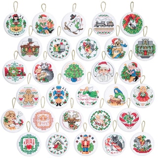 SaleLotsa Christmas Ornaments Counted Cross Stitch Kit-2" Round 14 Count Set Of 30