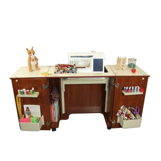 SaleKangaroo Kabinets Bandicoot Teak Crafts & Sewing Machine Table with Storage and Organization Cabinet