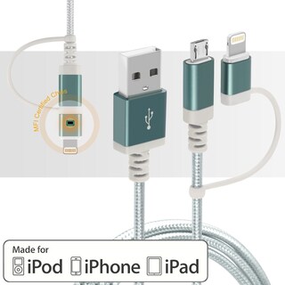 This 2-in-1 Data Sync Cable is compatible with Apple and Android devices for charging and data transfer. This design supports 90-percent of all tablets and smartphones. High density tinned copper core with better quality and faster charging speeds. Accelerate both the data transfer speed and charging speed up to 30-percent. Maximum support for 2.0-amp charging. IDEA cable uses exclusive TPE material which is three times stronger and more flexible than a regular cable and measures 3.2 feet long.- Cable designed with 8-pin connector and Micro USB connector to meet various needs