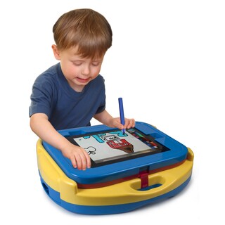 Along with the special iPad case on one side, this multi-functional easel features a traditional dry-erase white marker board on the reverse side. So even when the iPad is unavailable or kids just want to have fun with markers, they can enjoy doodling and being artistic with this easel. This easel is also great for multiple children, so while one is getting creative coloring with markers another can play with drawing apps or games on the other side with the iPad case. Kids come in different sizes and kids can grow and sprout quickly and unexpectedly, so it’s good to know that this Easel can keep up with them for a while and work for children of different ages with its three height options. Parent can easily adjust between each level by simply unscrewing the legs and repositioning to one of the three available height settings. The legs can also be removed entirely to use the easel on a tabletop if desired. The Easel comes with art supplies for kids to get creative right out of the box. A large crayon-like stylus for the iPad allows children to easily draw and color with their favorite apps. All of the art supplies can be stored in the included art supply tray, which can be attached to either side of the easel.| Dimensions | See Details |