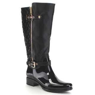SaleBeston CB34 Women's Quilted Two-tone Buckle Under Knee-high Rain Boots